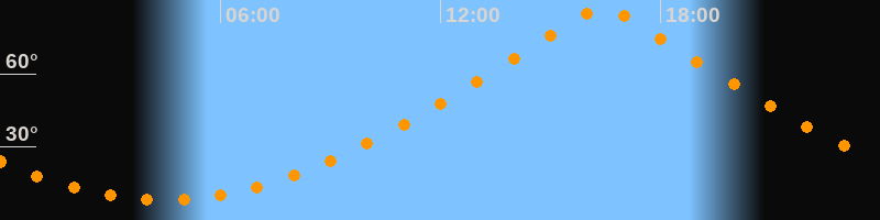 | Höchster Stand (Kulmination) | 16:26 Uhr (h = 87°) |