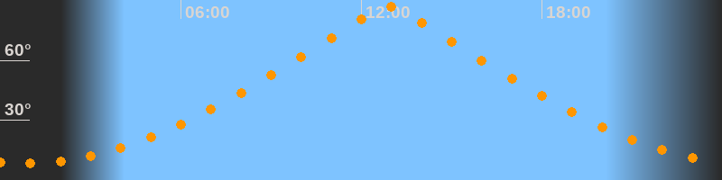 | Höchster Stand (Kulmination) | 12:54 Uhr (h = 87°) |