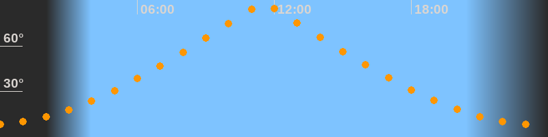 | Höchster Stand (Kulmination) | 11:31 Uhr (h = 87°) |