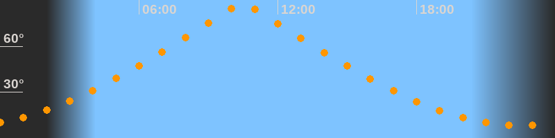| Höchster Stand (Kulmination) | 10:28 Uhr (h = 87°) |
