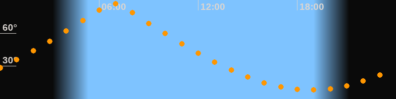 | Höchster Stand (Kulmination) | 06:52 Uhr (h = 87°) |