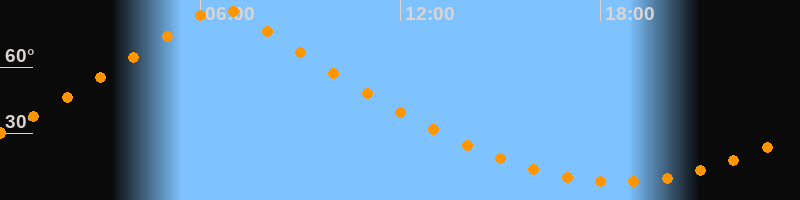 | Höchster Stand (Kulmination) | 06:36 Uhr (h = 87°) |