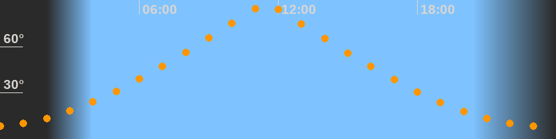 | Höchster Stand (Kulmination) | 11:28 Uhr (h = 87°) |