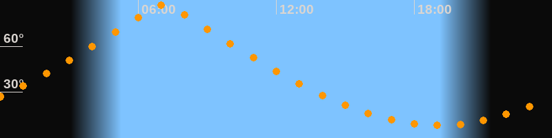 | Höchster Stand (Kulmination) | 07:05 Uhr (h = 87°) |