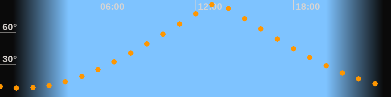 | Höchster Stand (Kulmination) | 13:15 Uhr (h = 87°) |
