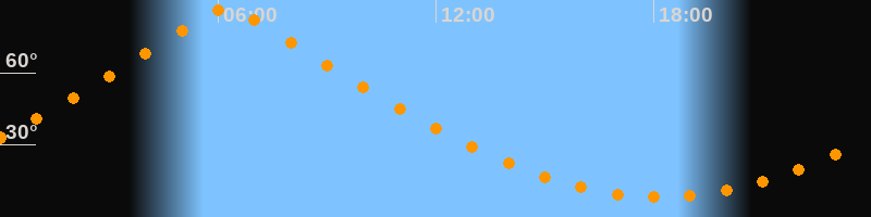 | Höchster Stand (Kulmination) | 06:15 Uhr (h = 87°) |