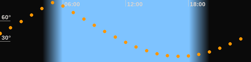 | Höchster Stand (Kulmination) | 05:12 Uhr (h = 87°) |