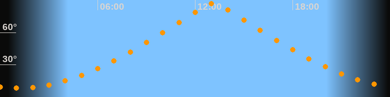 | Höchster Stand (Kulmination) | 13:06 Uhr (h = 87°) |