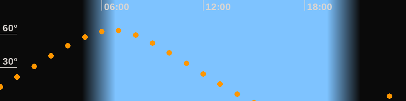 | Höchster Stand (Kulmination) | 06:39 Uhr (h = 63,4°) |