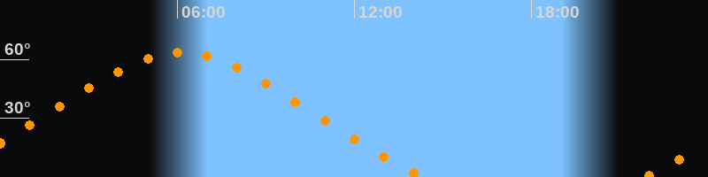 | Höchster Stand (Kulmination) | 06:07 Uhr (h = 63,4°) |