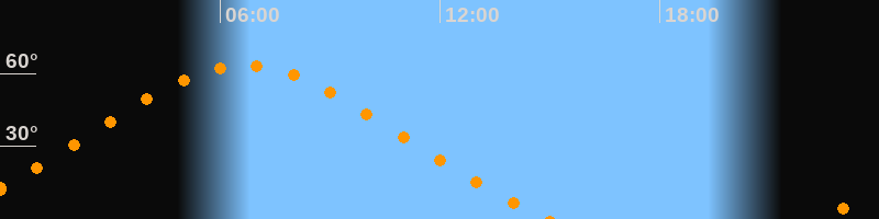 | Höchster Stand (Kulmination) | 06:40 Uhr (h = 63,4°) |