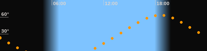 | Höchster Stand (Kulmination) | 18:31 Uhr (h = 63,4°) |