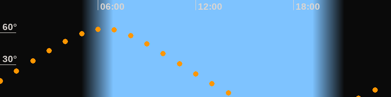 Höchster Stand (Kulmination)06:22 Uhr (h = 63,4°)