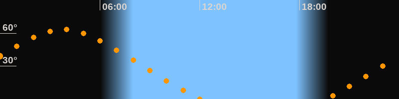 | Untergang | 12:05 Uhr im Nordwesten (αAz = 311,1°) |
