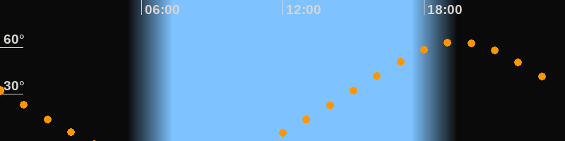 | Höchster Stand (Kulmination) | 19:28 Uhr (h = 63,4°) |