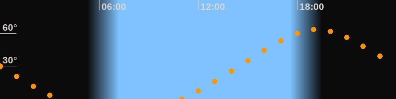 | Höchster Stand (Kulmination) | 19:12 Uhr (h = 63,4°) |