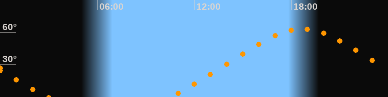 | Höchster Stand (Kulmination) | 18:41 Uhr (h = 63,4°) |