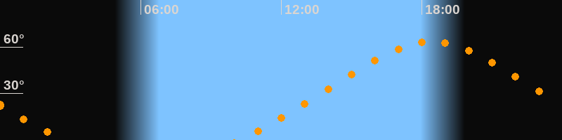 | Höchster Stand (Kulmination) | 18:25 Uhr (h = 63,4°) |