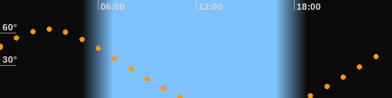 | Untergang | 11:11 Uhr im Nordwesten (αAz = 311,1°) |