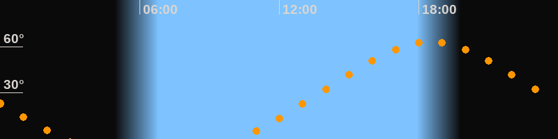 | Höchster Stand (Kulmination) | 18:30 Uhr (h = 63,4°) |