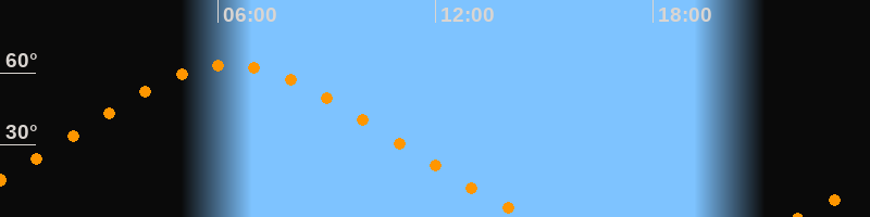 | Höchster Stand (Kulmination) | 06:20 Uhr (h = 63,4°) |