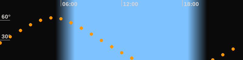 | Höchster Stand (Kulmination) | 05:13 Uhr (h = 63,4°) |