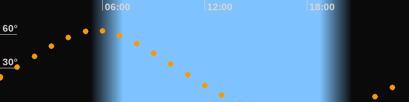 | Untergang | 13:53 Uhr im Nordwesten (αAz = 311,1°) |