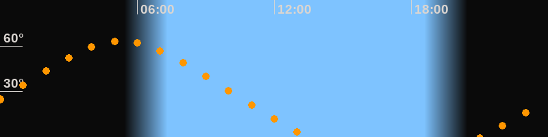 | Höchster Stand (Kulmination) | 05:18 Uhr (h = 63,4°) |
