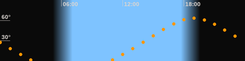 Höchster Stand (Kulmination)18:57 Uhr (h = 63,4°)