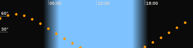 | Untergang | 10:11 Uhr im Nordwesten (αAz = 311,1°) |