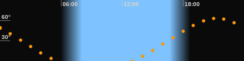 Höchster Stand (Kulmination)21:16 Uhr (h = 63,4°)
