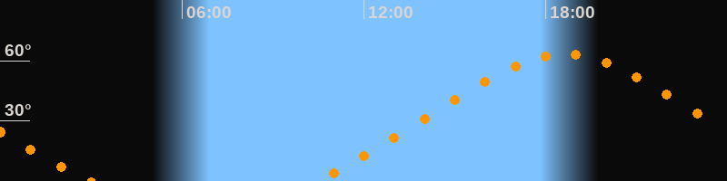 | Höchster Stand (Kulmination) | 18:39 Uhr (h = 63,4°) |