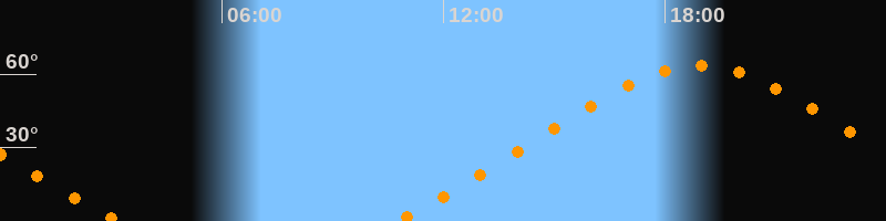 Höchster Stand (Kulmination)18:55 Uhr (h = 63,4°)