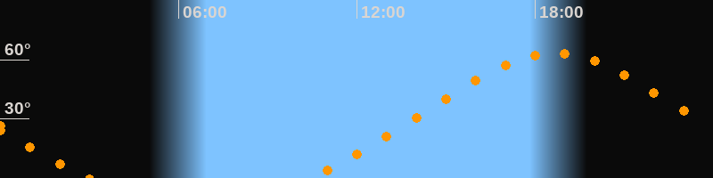 Höchster Stand (Kulmination)18:40 Uhr (h = 63,4°)