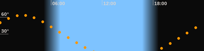 | Aufgang | 18:16 Uhr im Nordosten (αAz = 48,9°) |