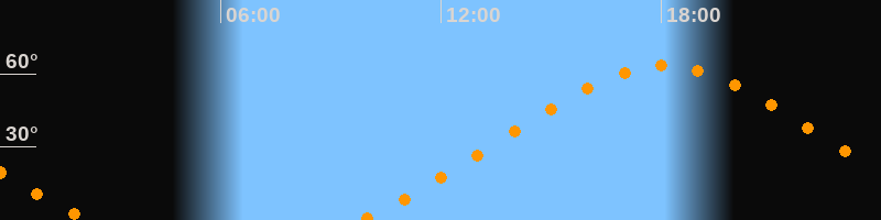 Höchster Stand (Kulmination)18:05 Uhr (h = 63,4°)