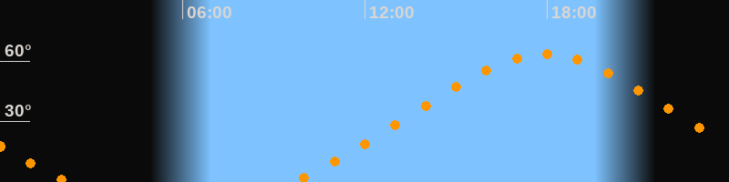 | Höchster Stand (Kulmination) | 17:54 Uhr (h = 63,4°) |