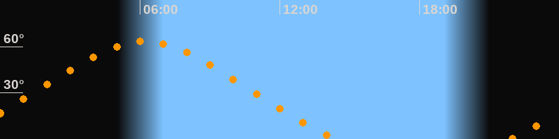 Höchster Stand (Kulmination)06:11 Uhr (h = 63,4°)