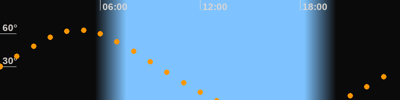 | Höchster Stand (Kulmination) | 04:44 Uhr (h = 63,4°) |