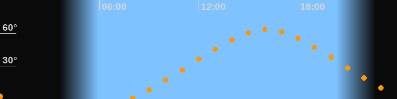 Höchster Stand (Kulmination)16:05 Uhr (h = 63,4°)
