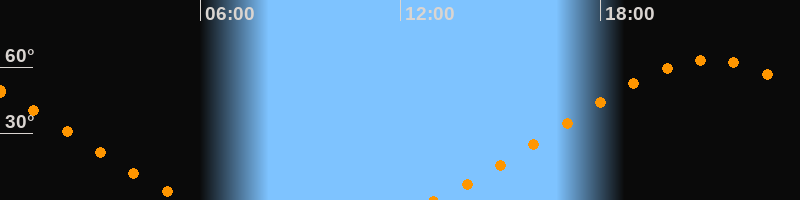 | Aufgang | 13:00 Uhr im Nordosten (αAz = 48,9°) |