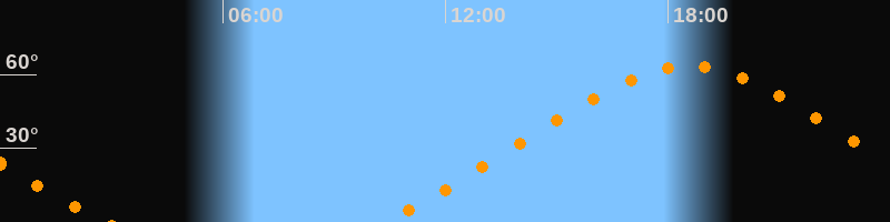 | Höchster Stand (Kulmination) | 18:33 Uhr (h = 63,4°) |