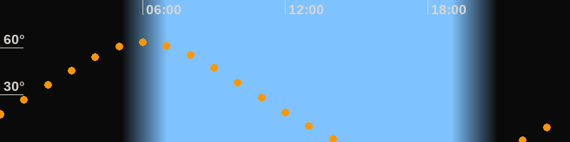| Höchster Stand (Kulmination) | 06:04 Uhr (h = 63,4°) |