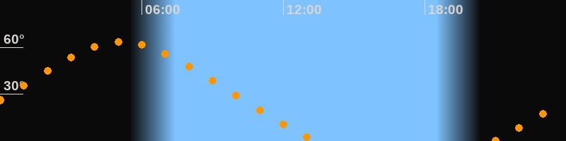 | Höchster Stand (Kulmination) | 05:09 Uhr (h = 63,4°) |