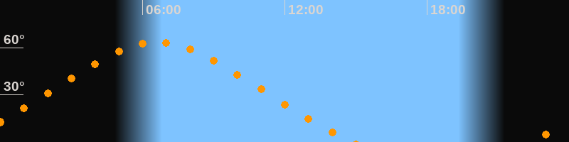 | Höchster Stand (Kulmination) | 06:37 Uhr (h = 63,4°) |