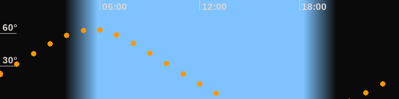 | Höchster Stand (Kulmination) | 05:31 Uhr (h = 63,4°) |