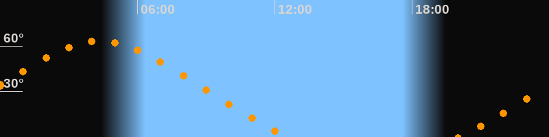 | Untergang | 12:36 Uhr im Nordwesten (αAz = 311,1°) |