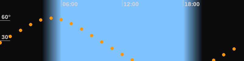 | Untergang | 13:20 Uhr im Nordwesten (αAz = 311,1°) |