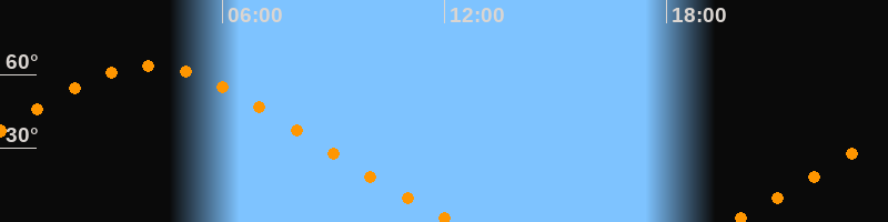 | Untergang | 12:18 Uhr im Nordwesten (αAz = 311,1°) |