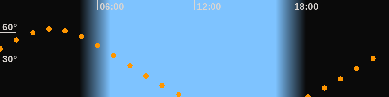 | Untergang | 11:26 Uhr im Nordwesten (αAz = 311,1°) |